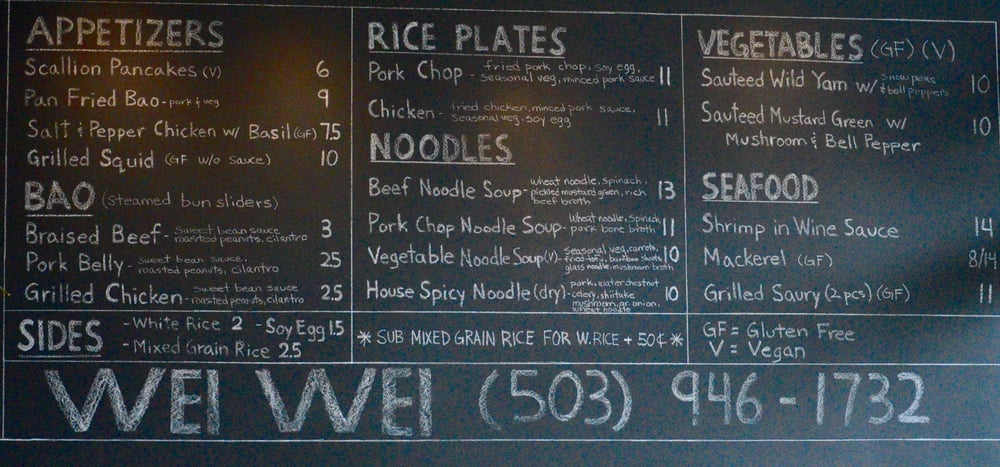 Wei Wei - A Taste of Taiwan Menu (Update 2025)